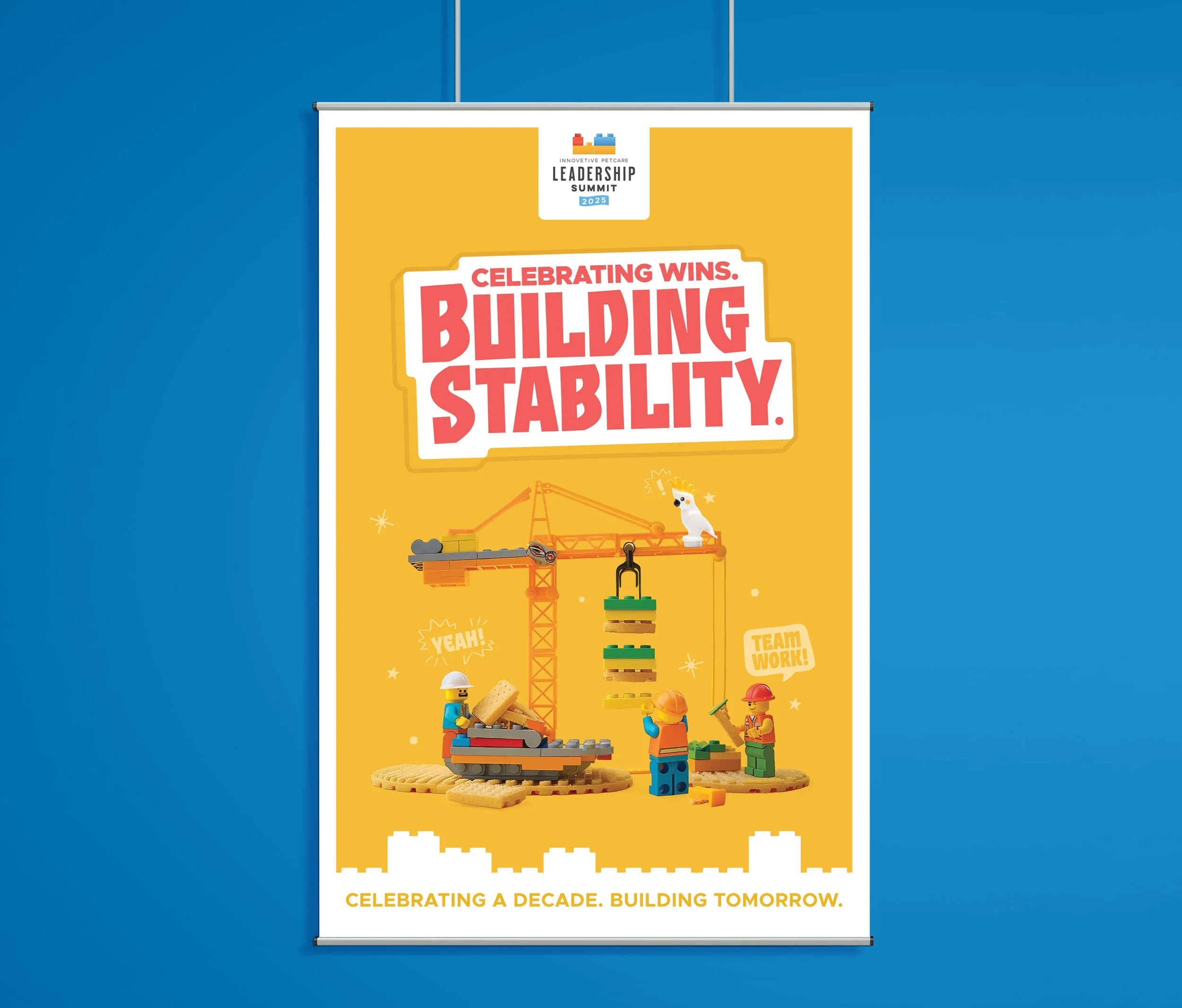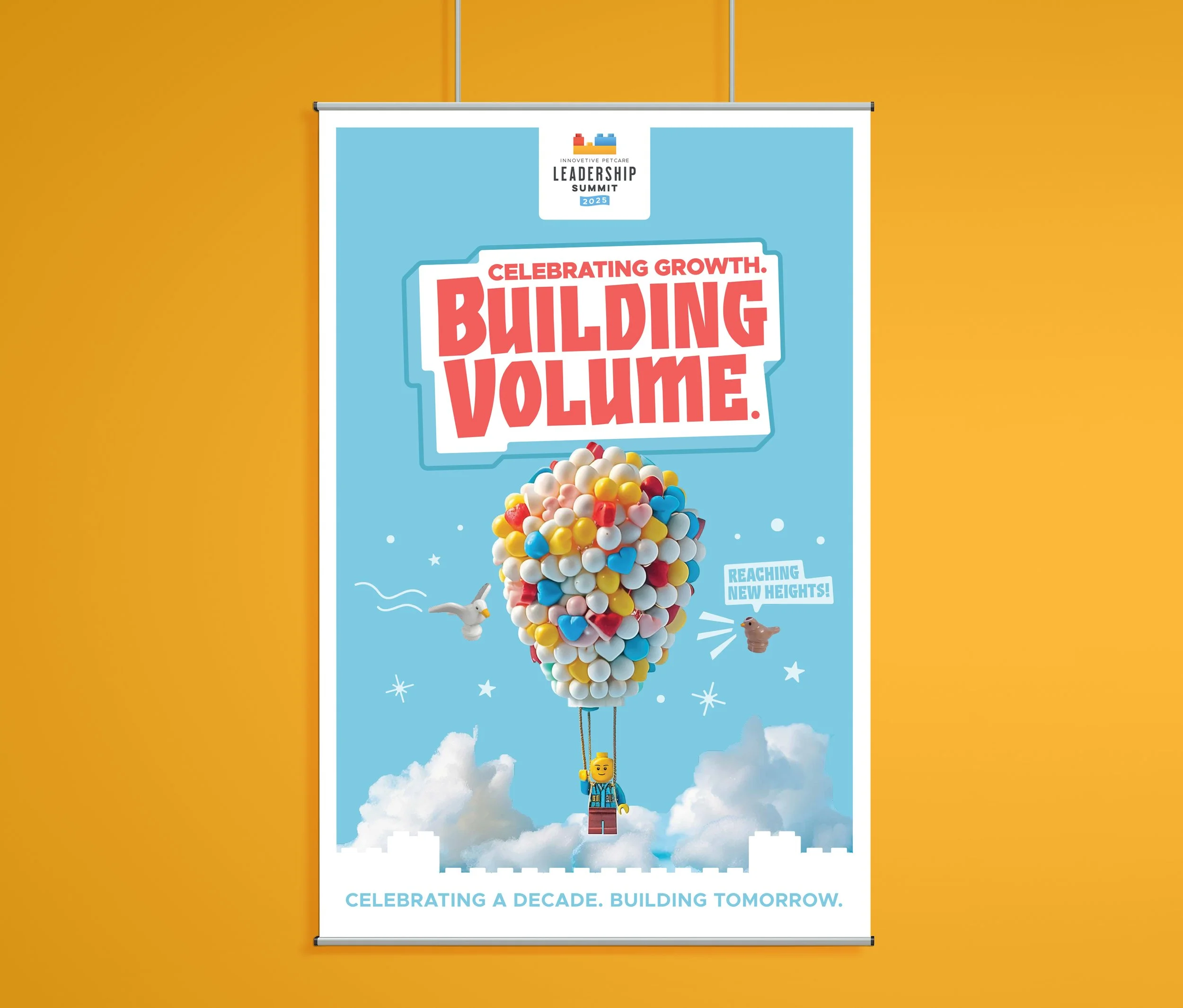 Needless to say, when we took on the creative direction for this event, we knew it needed to feel playful, warm, and collaborative. We designed every piece of event collateral - from the attendee badges and wayfinding signage to the presentation graphics and branded digital assets - to capture the sense of fun and community that legos represent.
